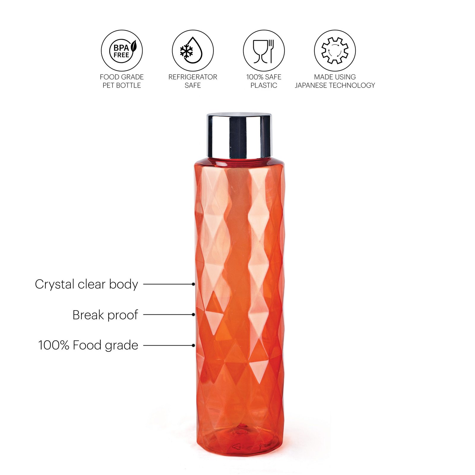 Cello Diamond PET Water Bottle, Set of 3, 1000ml, Orange